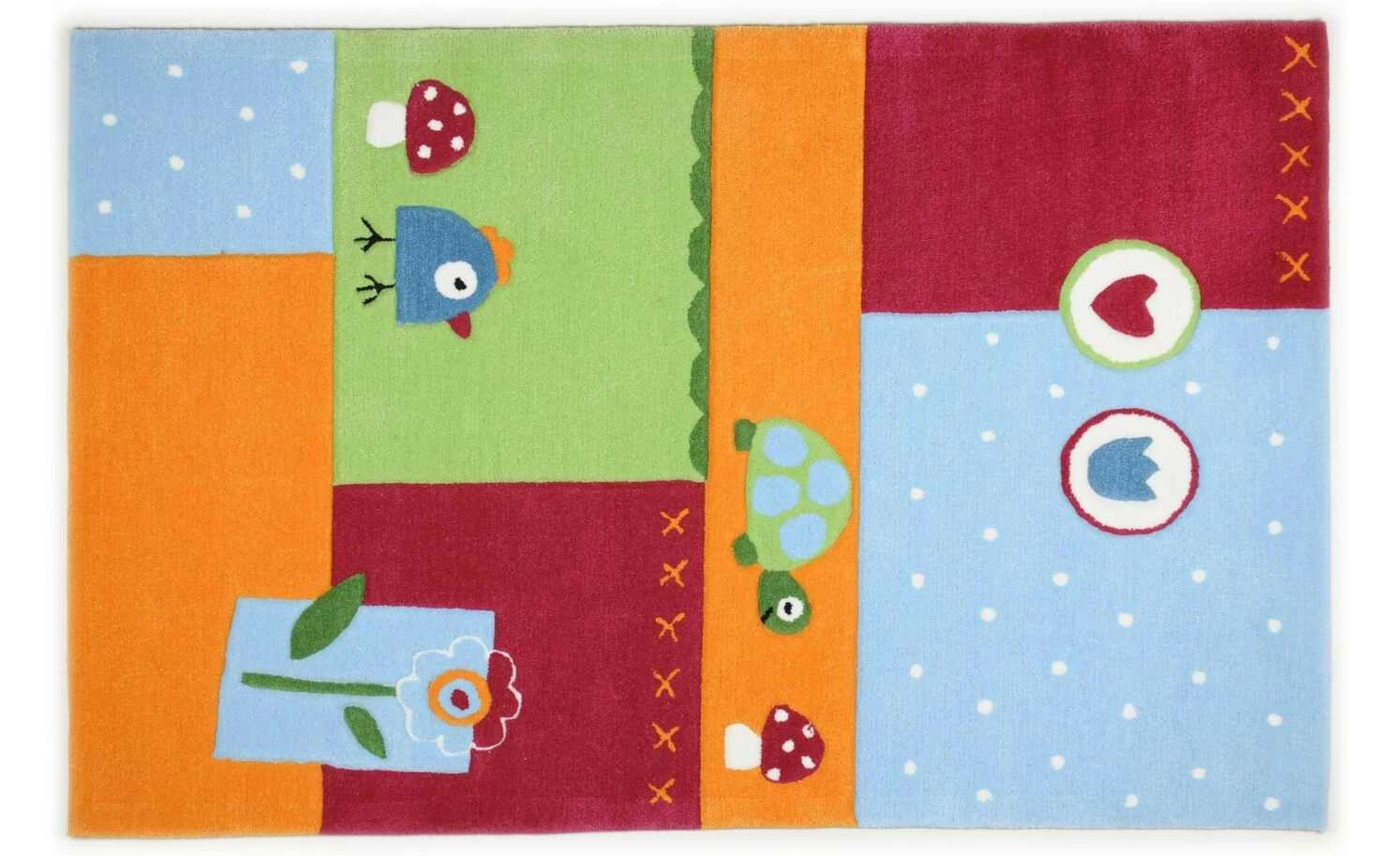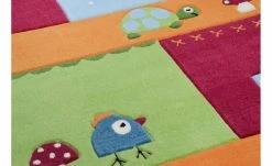 Dieser bunte Kinderteppich mit seinem fröhlichen Schildkröten- und Vogelmotiv lädt Ihren Nachwuchs auf den ersten Blick zum Spielen und Staunen ein. Die kindgerechten kräftigen Farben passen ideal ins Kinderzimmer und lassen den Teppich zum attraktiven Blickfang werden. Er ist handgetuftet und dadurch besonders weich, damit sich Ihr Kind darauf jederzeit gut aufgehoben fühlen kann.